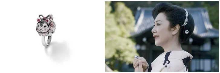 動画では名取さんが、ミキモトのハイジュエリー13点を纏い登場。「和装」も意識して作られたミキモトの特別なジュエリーとなっています。