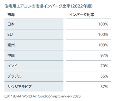 そうした中、省エネ技術である「インバータ」を搭載したエアコンの比率は日本や欧州ではほぼ100%に達する一方で、米国や中東・アフリカ、アジアなどを中心に、世界全体ではまだまだ低いのが実情です。普及拡大のためには「高効率インバータエアコン」はすぐに導入可能で、即効性のある技術であるという認知を各国で高めていくことが必要です。