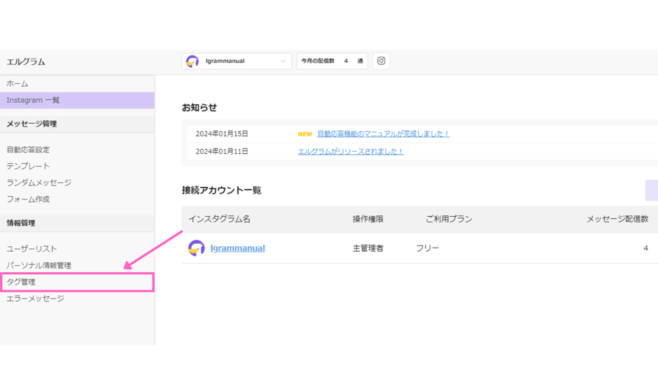 株式会社ミショナ提供のInstagram(インスタ)自動化ツール「エルグラム」はアカウント開設者数が500人を突破。 自動応答・アンケート・タグ管理など豊富な機能を利用可能。無料キャンペーン実施中。