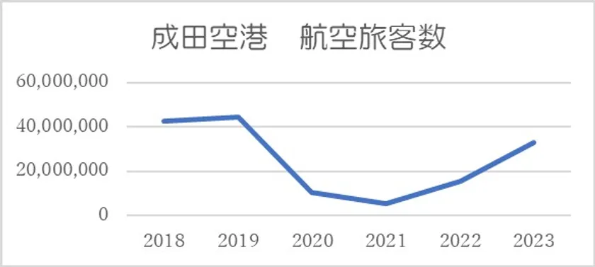 新型コロナウイルス感染症が5類に移行され、訪日外国人も日本人海外旅行客も急増し、成田空港利用者が急増していることが影響しています。
