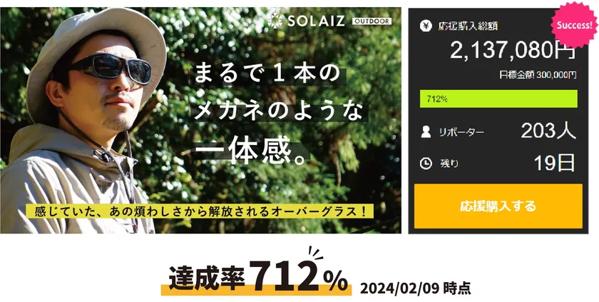 公開初日で目標達成! 独自の偏光レンズで目肌を守るアイケア搭載のオーバーグラス、 Makuakeでの先行販売がラストスパート。2月28日18:00まで!