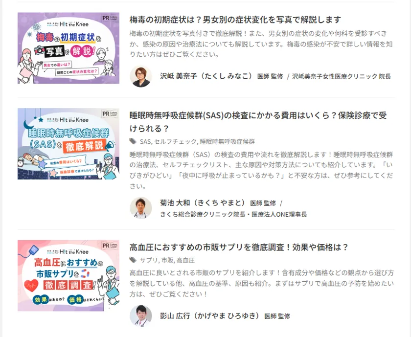 また、Hit the Kneeでは、記事の監修医も募集しております。詳細はメール( info@hit-the-knee.com )にてお問い合わせください。