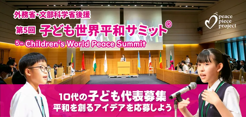 世界平和を実現するための活動を行っている一般社団法人ピースピースプロジェクト(代表:多田 多延子、所在地:広島県広島市)は、第5回「子ども世界平和サミット」(後援:外務省、文部科学省、広島県教育委員会)の「世界を平和にするアイデア」を2024年4月1日から募集開始します。