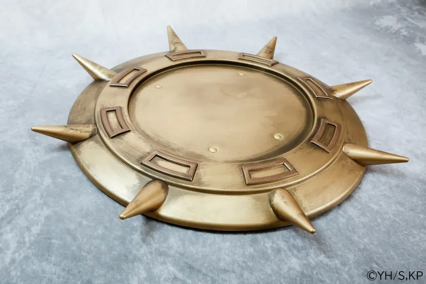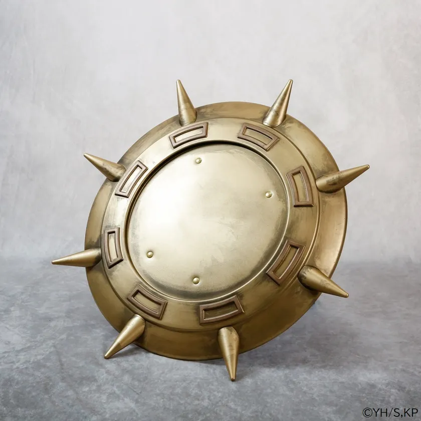 信がヒョウ公から託された盾を原寸大サイズにて再現した武器フィギュアです。使い込んだ質感を再現したアンティーク調の塗装と、特徴的なトゲを再現しました。剣とセットで信になったような気分が味わえます。