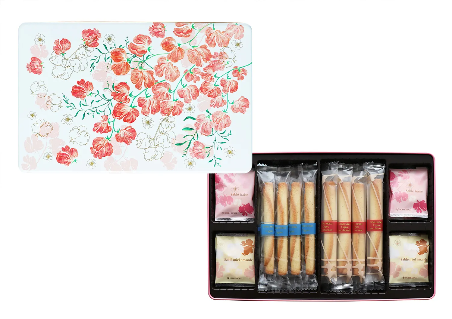 内容:シガール:8本、シガール オゥ ショコラ:8本、サブレ フレーズ:10枚、サブレ ミエル アマンド:10枚