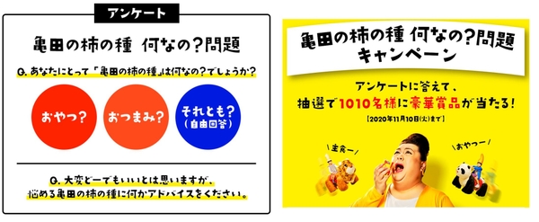 2020年9月から11月の期間で、皆様にとっての「亀田の柿の種」についてお答えいただく、「亀田の柿の種 何なの?問題」キャンペーンを実施いたしました。10万件を超える応募があり、フリーアンサーでは「ピーナッツだけではない、もっと違うバリエーションの商品を作ってほしい」というピーナッツ以外の組み合わせに期待する声を多数いただきました。