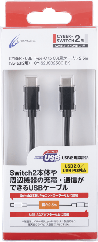『CYBER・USB Type-C to C充電ケーブル 2.5m(Switch2用)』製品概要