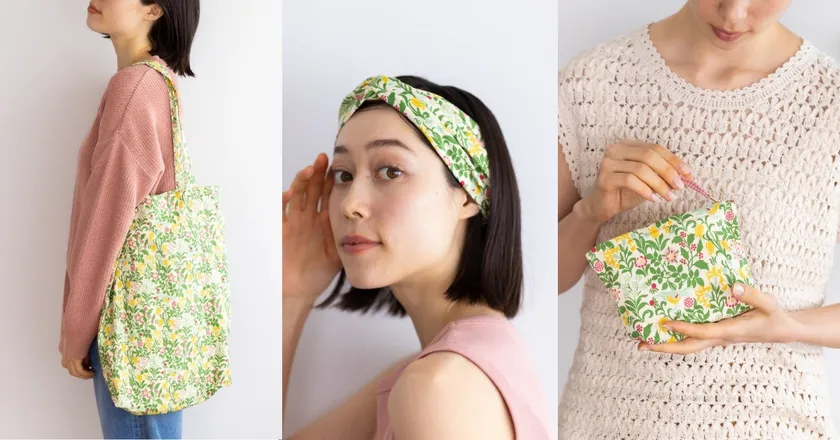中央) V&A オーガニックコットンサテンヘアバンド セランダイン柄 2,750円(税込)