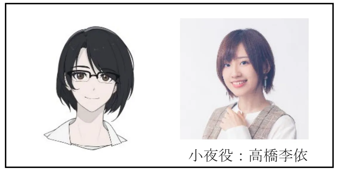 声優には、テレビアニメや劇場アニメの話題作で活躍し、『【推しの子】』『メダリスト』などにご出演の大塚剛央さんと、『【推しの子】』『るろうに剣心-明治剣客浪漫譚-』などにご出演の高橋李依さんを起用しました。さらに、ヨルシカのボーカリストsuisさんが本オリジナルアニメーションの主題歌を歌うだけでなく、声優にも初挑戦しています。