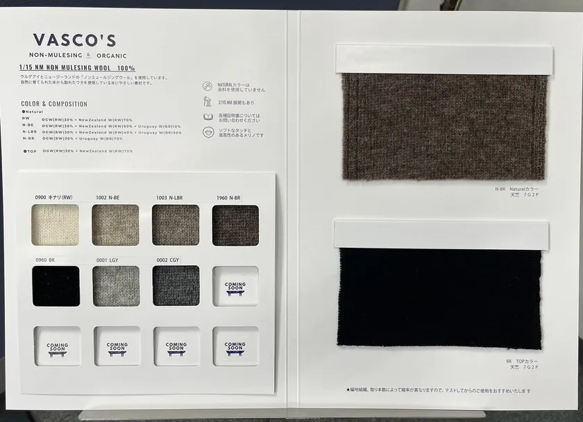 バスクスは、GOTS認証を取得したウルグアイオーガニックウールを一部使用した、ノンミュールジング*の紡毛ウール素材です。