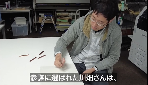 よみがえった古代のボードゲーム「かりうち」キットを使って、奈良文化財研究所の所長と副所長に対決をしていただきました。 対決の前に、所内から参謀役をくじ引きで選ぶことに...。くじで選ばれた職員に所長、副所長がその場で電話連絡を...反応は如何に!?