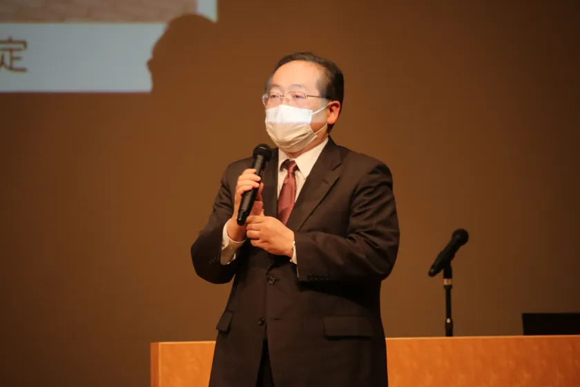 昨年度の公開シンポジウムの様子(四天王寺大学須原学長)