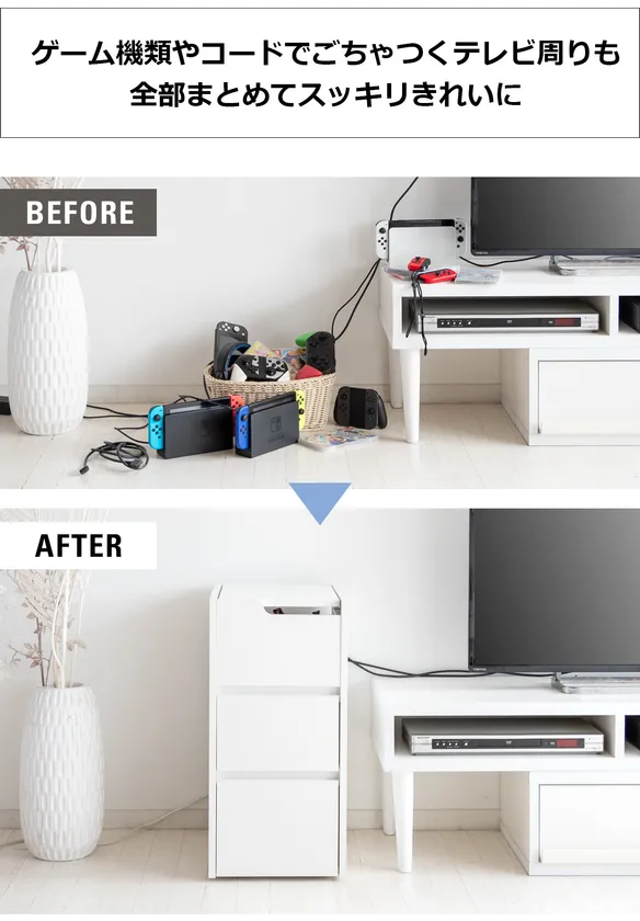 Switch3台とコントローラーやゲームソフトなどの周辺機器をまとめて収納できます。インテリアから浮いてしまうSwitchを3台分充電スタンドごと入れられるので複数台お持ちのご家庭でも、お部屋の雰囲気を損ねることなくおしゃれな空間を演出できます。