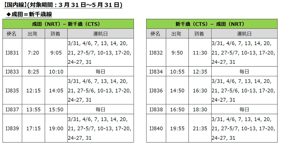 スプリング・ジャパン 2024年3月31日~5月31日の国内線販売開始について