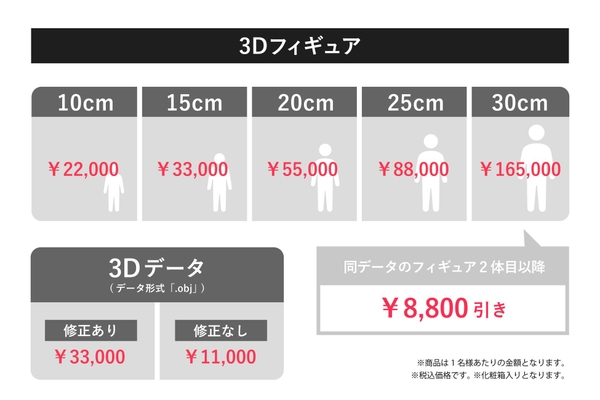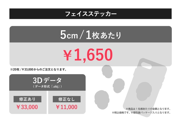全身を1秒且つ高精度で3Dスキャンできる全身スキャナを店舗内に設置し、超リアルなオリジナルのフィギュア(1体税込22,000円~)や顔面ステッカー(20枚セット税込33,000円)が作れるサービスを開始。大切な人へ送る特別なギフトとして「フィギュア化券」も店舗と販売サイト(https://www.metamate.jp/SHOP/SC000015.html)にて販売致します。