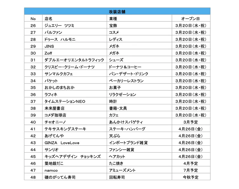 ・店名・業種および本資料については、2月21日現在の情報のため変更となる場合がございます。