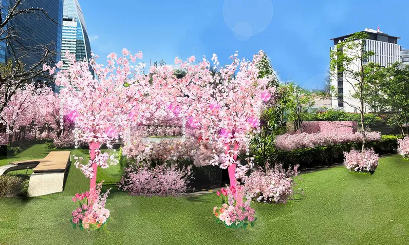 都会の空中庭園 5F「スカイガーデン」が、期間限定でサクラをモチーフにした「サクラスカイガーデン」として、都会の春を彩ります。