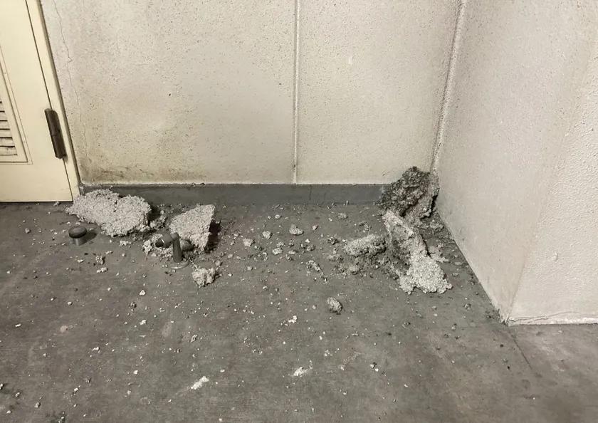 天井からはがれて落下した吹付け材