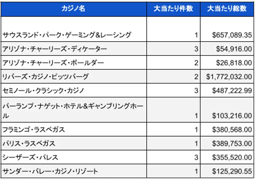 2024年1月時点での米国カジノのジャックポット当選件数と総額01