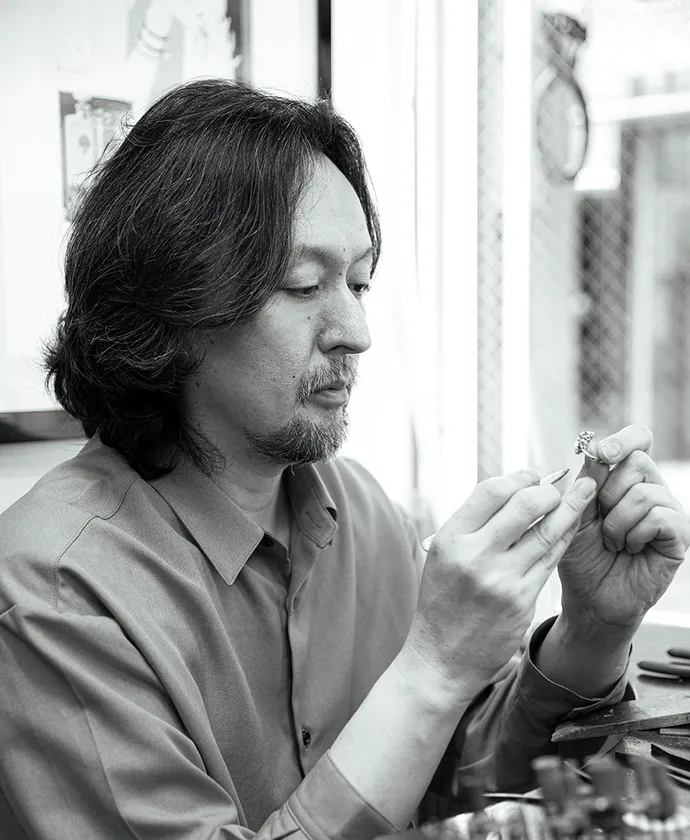 日本における宝飾師の祖である「錺(かざり)職人」の志を受け継ぎ、ジュエリー・アーティストとしての感性と、宝飾師としての職人の手仕事を融合する事で、 新しい価値を持った芸術作品を世に送り出しています。