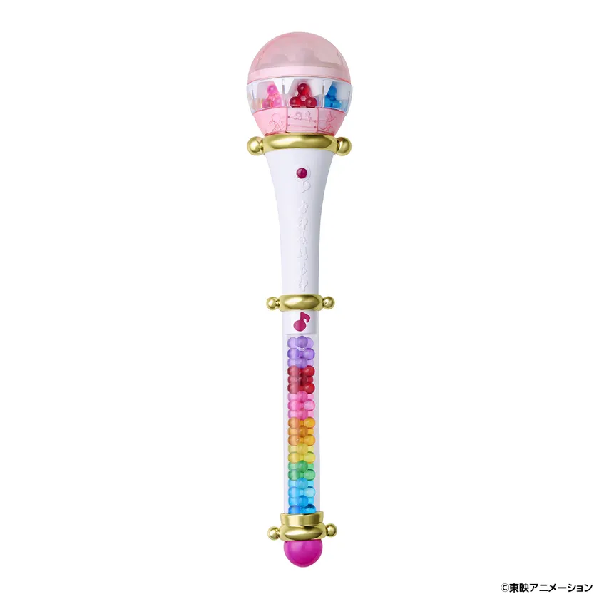 本体は、金色メッキ加工やクリア素材を使用した豪華仕様。劇中に近い見た目にこだわり、同じく劇中に登場する魔法の楽器「ペペルトポロン」よりもバージョンアップした魔法玉を、透明感あるクリア素材の一体成型で再現しました。本体の回転部分に入る魔法玉は入れ替えを行うことも可能で、入れると本体の上部が光り劇中同様のメロディが再生されます。