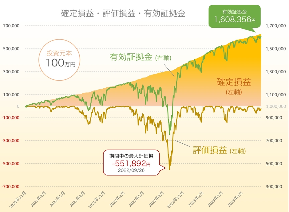 投資元本(100万円)に対する総合損益(608,356円)の割合