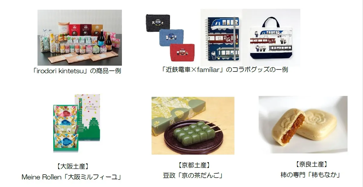 「irodori kintetsu」(※)の商品、「近鉄電車×familiar」のコラボグッズや大阪・京都・奈良のお土産物を販売します。