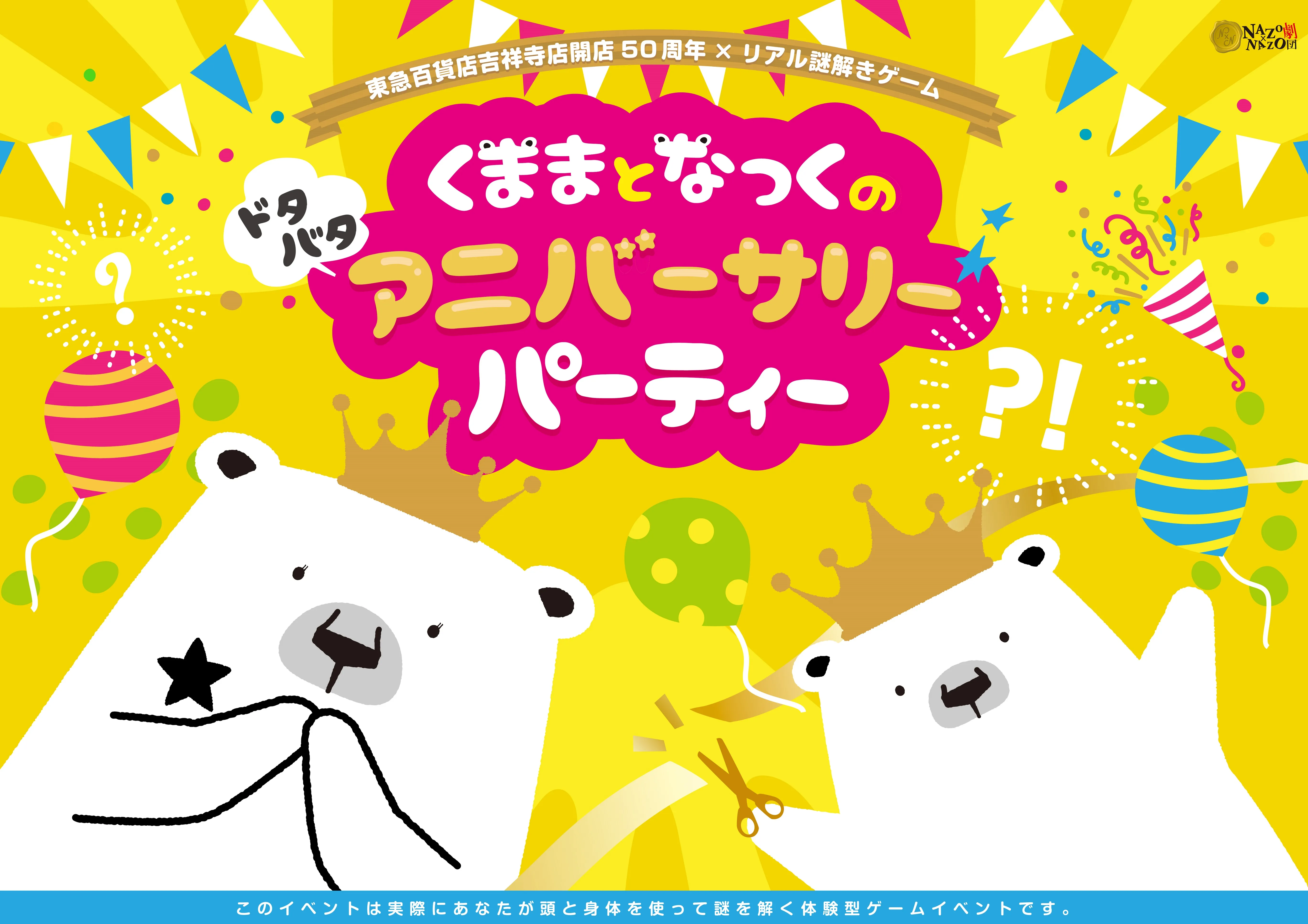東急百貨店吉祥寺店 開店50周年記念「リアル謎解きゲーム」を開催 初級編「くままとなっくのドタバタアニバーサリーパーティー」 上級編「50年の刻を巡るタイムトラベル」 期間:2024年3月14日(木)~27日(水)