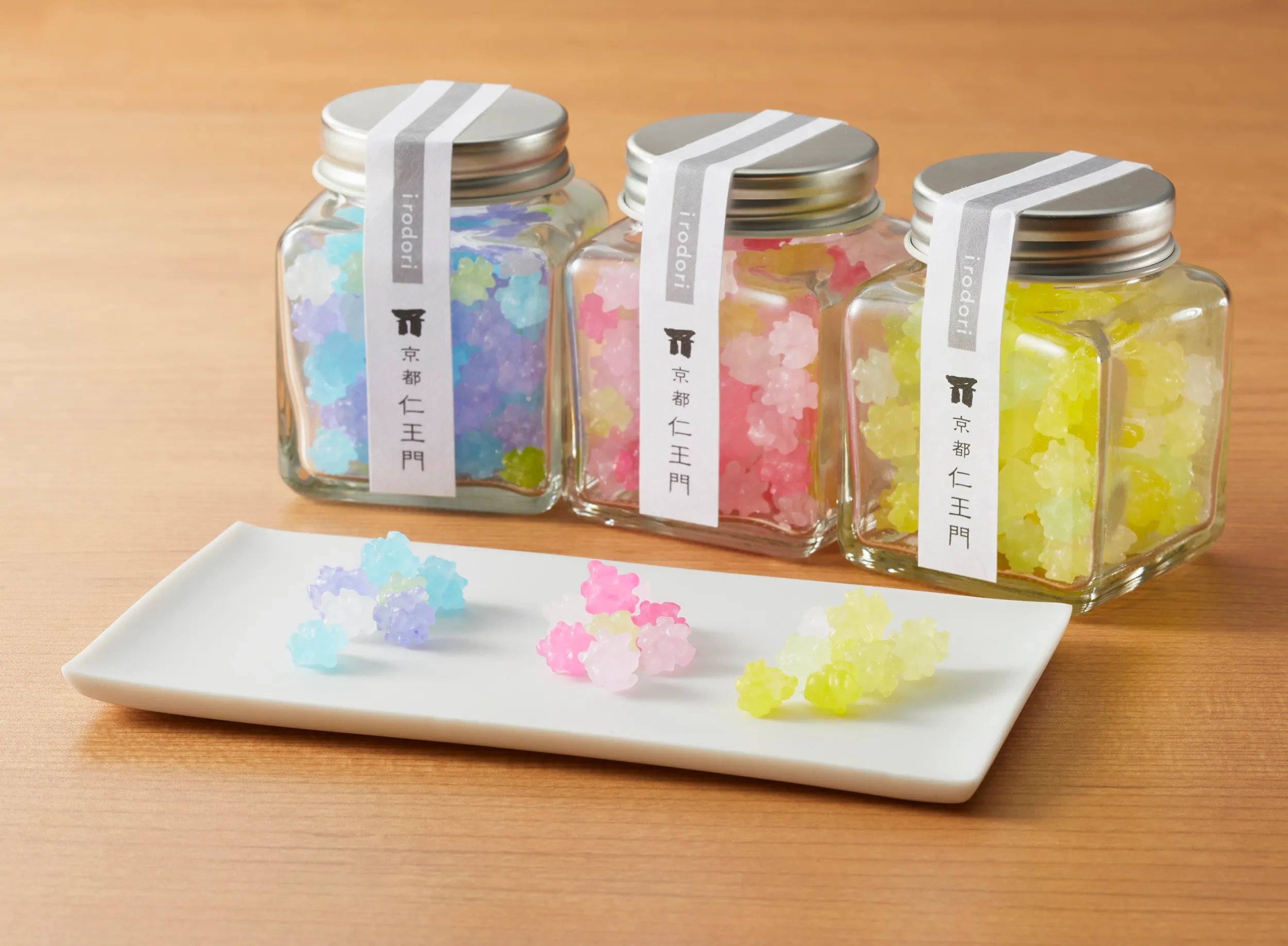 京都の頂妙寺から続く仁王門通に店舗を構える菓子店<京都仁王門>が期間限定出店。手のひらに包めるほどの小瓶から、可愛いお菓子たちが顔を覗かせ「おいしいですよー」と、みんなで大合唱しています。「さくら金平糖」をはじめとしたどこか懐かしい金平糖6種類と和風のドロップ、ビーンズ4種類をラインナップ。ちょっとしたプレゼントにもおすすめです。