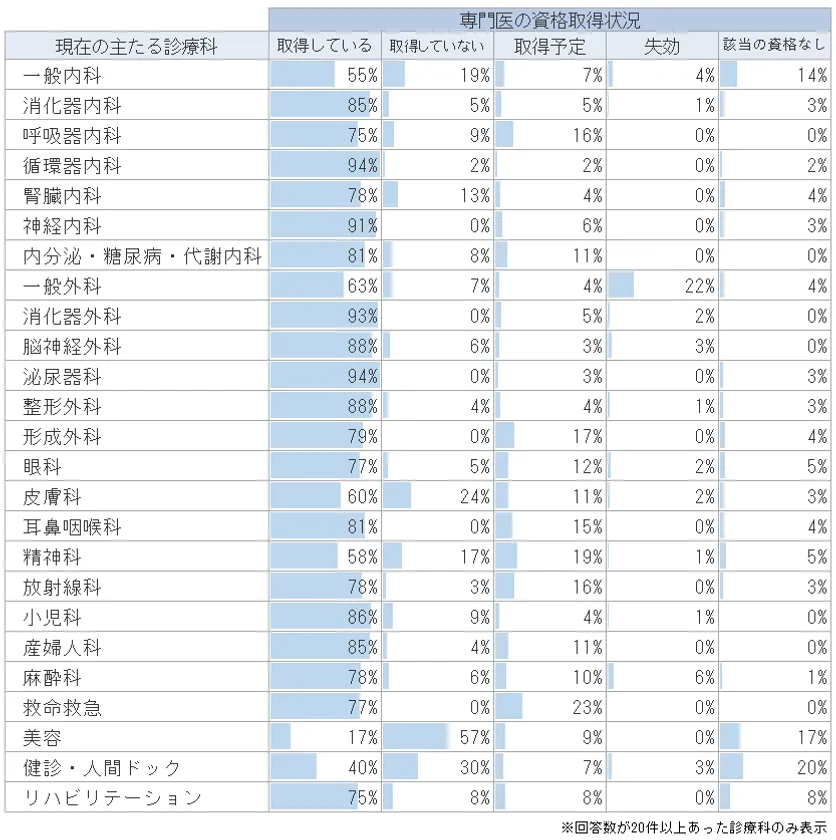 ・美容や健診・人間ドック、一般内科では専門医の取得率が低い傾向