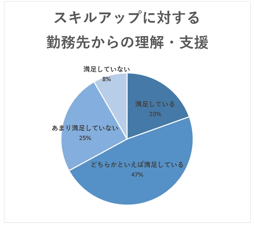 ・スキルアップに対する職場からの理解・支援への満足度は67%