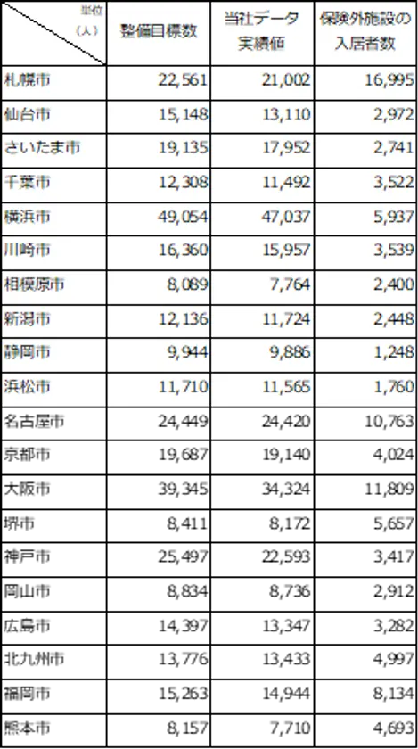 株式会社TRデータテクノロジー(本社:東京都中央区、代表取締役:田中 幹雄、以下 当社)は、今年4月からの介護保険制度改正を目前に控え、今期(第8期計画/令和3~5年度)の介護保険施設ならびに保険外施設の整備状況を分析しました。政令指定都市を対象とした分析結果は下記のとおりです。