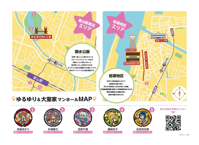 『ゆるゆり』『大室家』のデザインマンホール蓋10枚が 作品ゆかりの地である富山に登場!