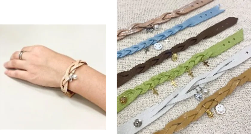 メイドインジャパンの肌触りのよいやわらかな革を使用し、フォルム・飽きのこないデザインを追求した靴づくりをテーマにしている婦人靴ショップ「あしながおじさん」(B館1階)による、靴に使った余り革をアップサイクルした“レザーブレスレットづくり”。