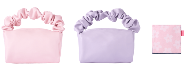 発売記念の購入特典として、2点以上ご購入の方には桜コップコースターをプレゼント。さらに4点以上ご購入の方に数量限定で可愛いポーチが贈呈されます。Qoo10にてご購入の方には紫色のポーチ、楽天市場にてご購入の方にはピンク色を贈呈致します。