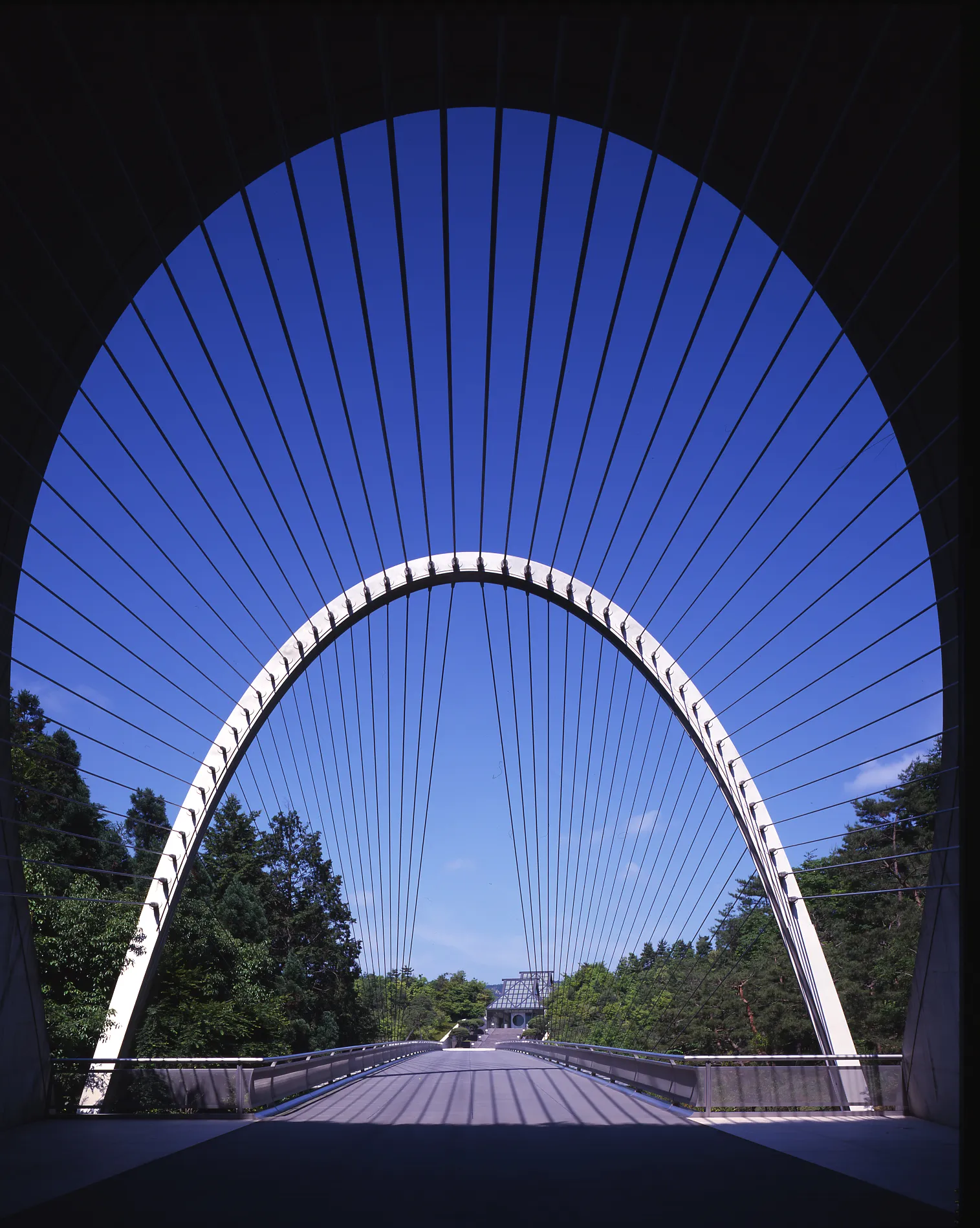 MIHO MUSEUMは1997年11月に琵琶湖の南、信楽の山中に誕生しました。建築設計は、パリ・ルーヴル美術館のガラスのピラミッドを設計したことで知られるI.M.ペイ。