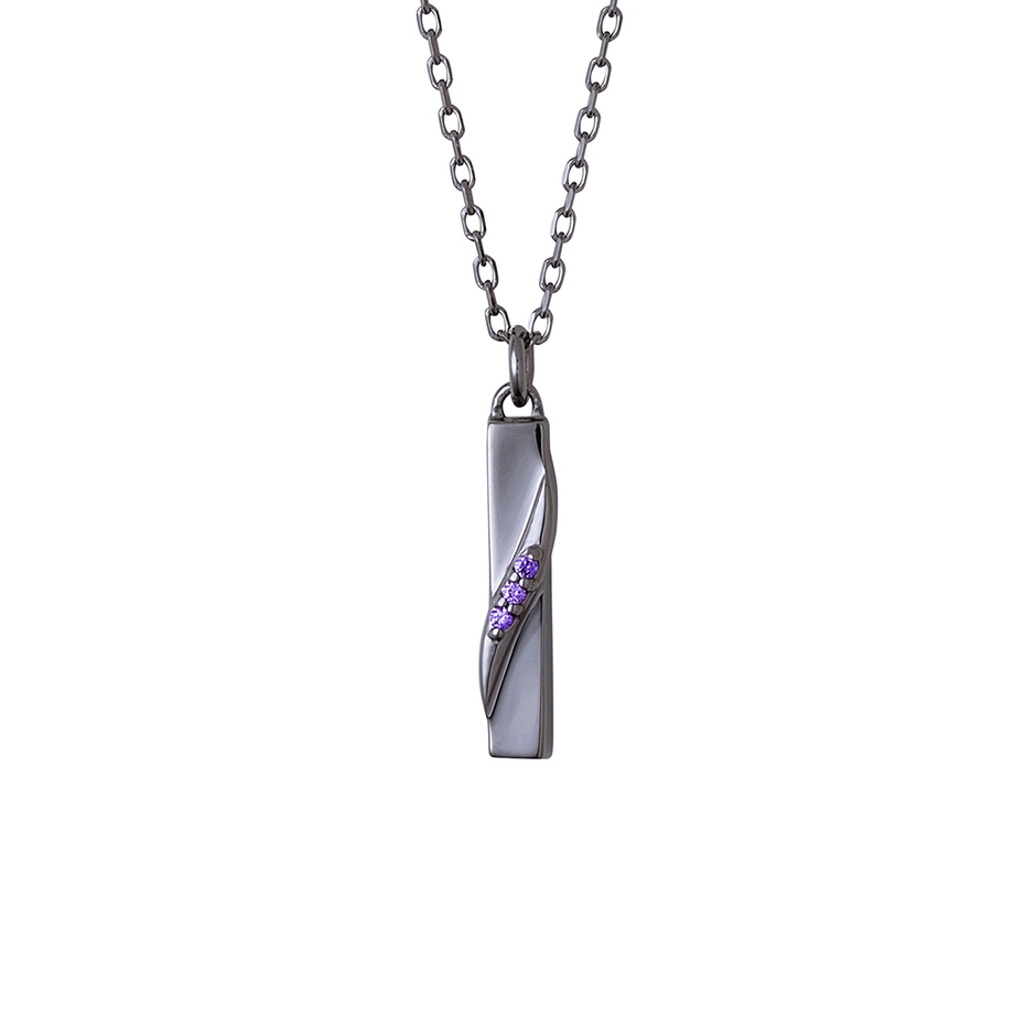 涼野いとモデルは、ウェーブラインのバータイプのネックレスにプリズムがきらめくストーンをセット。裏面にはさりげなく音符を刻印。