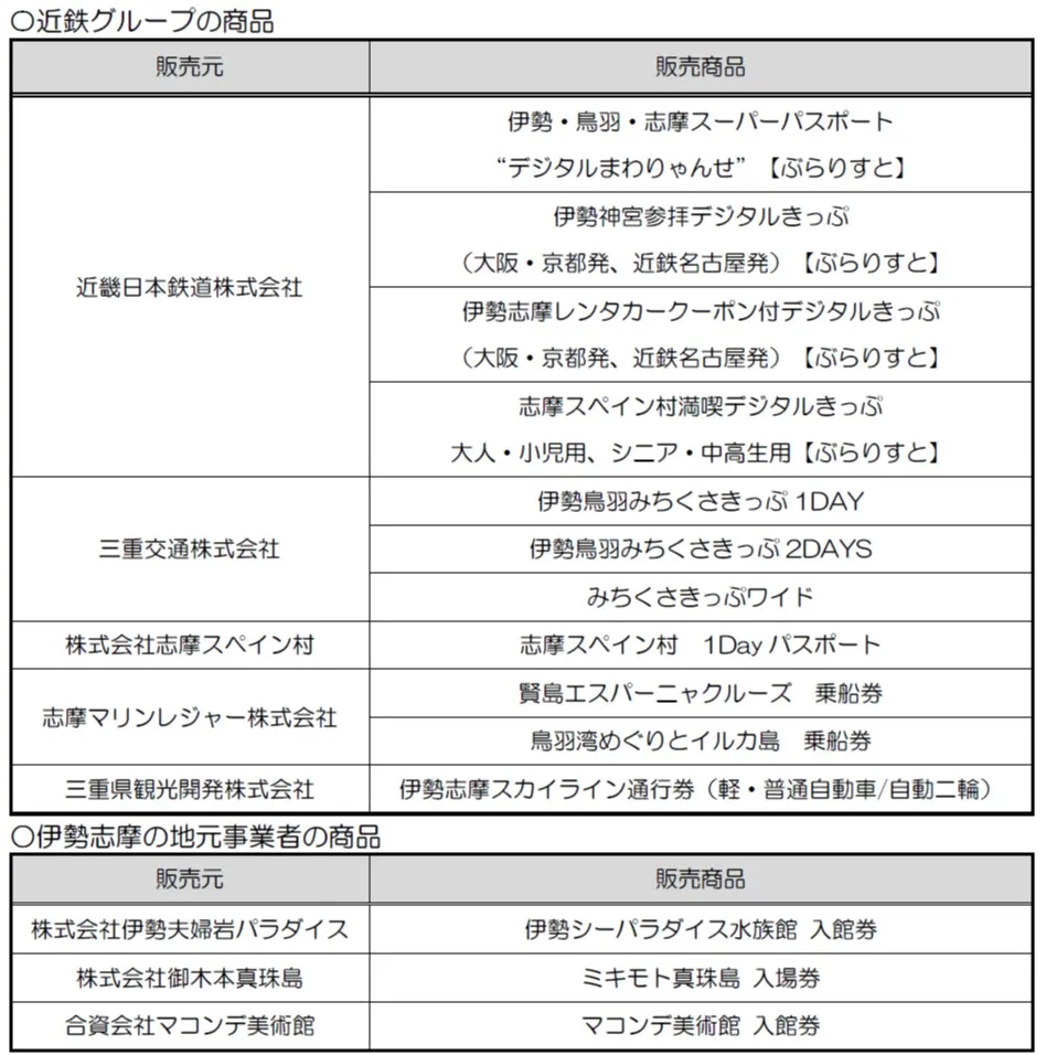 ・近鉄電車や三重交通バスのお得なきっぷや、観光施設の入館券などを発売