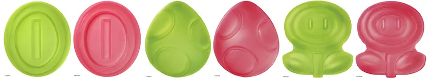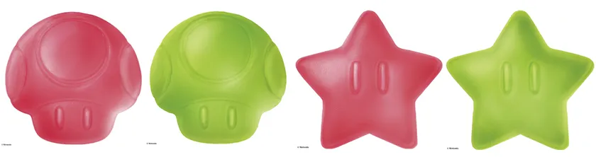 スーパースターやスーパーキノコなど、パワーアップアイテムの形をした、グレープ味のミニグミも入っています!