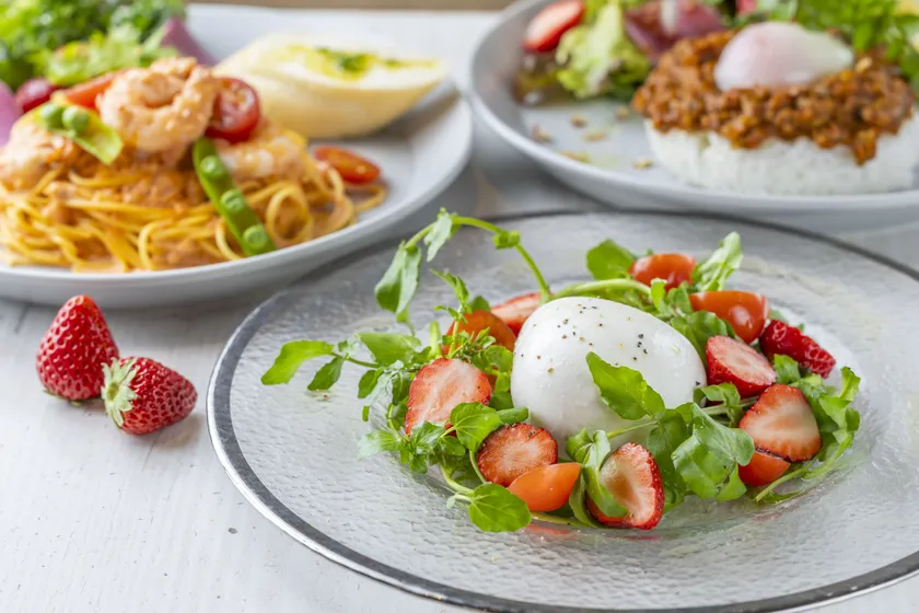 「いちごと丸ごとモッツァレラのサラダ」の他に、ビーフシチューやキーマカレーなどのランチプレートもご用意しております。