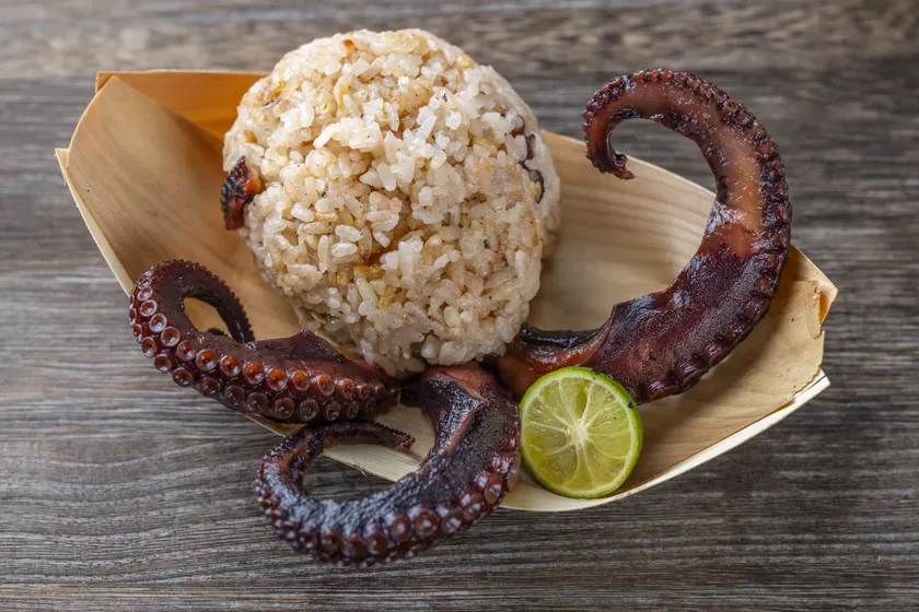 羽釜でじっくりと炊きあげることで蛸の旨みを引き立てた逸品。見た目も楽しくお召し上がりいただけます。