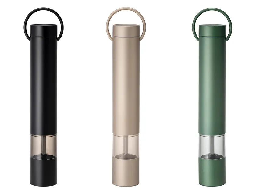 ボタン一つで簡単に挽き分けができる乾電池タイプのミル。スリムなボディと印象的なカラーで食卓が洗練された雰囲気に。
