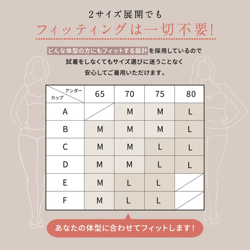どんな体型にもフィットする設計を採用しているので、試着をしなくてもサイズ選びに迷うことなく安心してご着用いただけます。