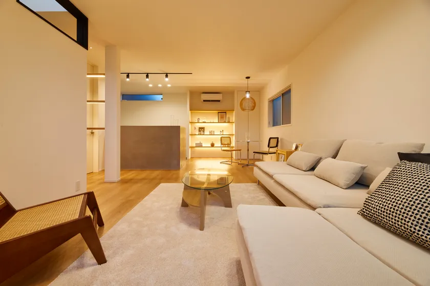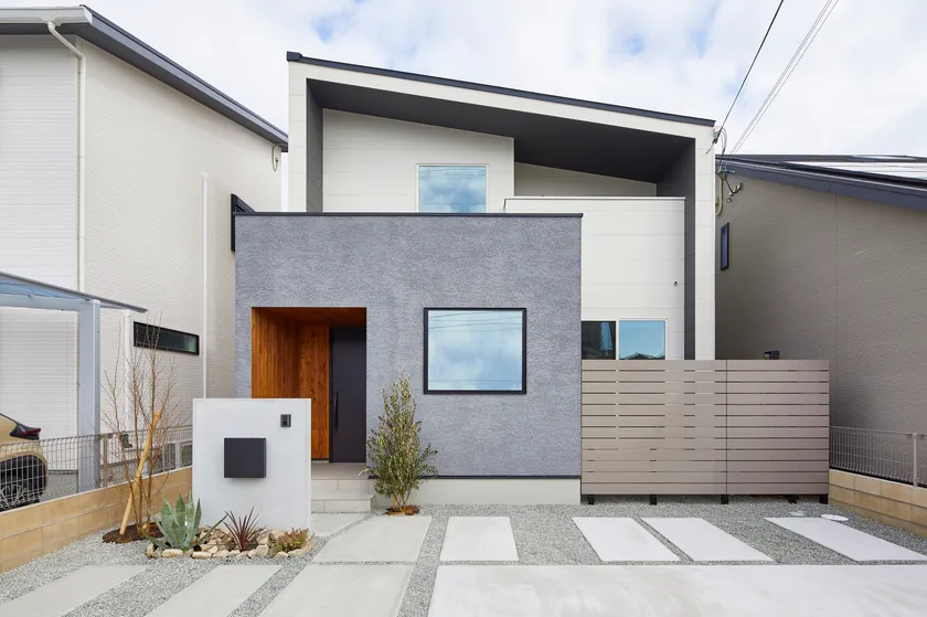 勝美住宅の普遍的なデザインにone specialのコーディネートが融合し、モノトーンな外壁で洗練された外観とグレージュの柔らかなカラーでまとめられたインテリアが印象的な内観となっているなど、こだわりが詰まったデザインで魅了するモデルハウスとなっています。