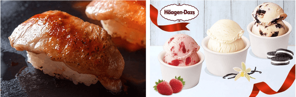 右:お肉料理を堪能した後は、ハーゲンダッツアイスクリームをどうぞ。濃厚なバニラや、クッキー&クリームなど、人気ラインナップを食べ放題でお好きなだけお楽しみください。