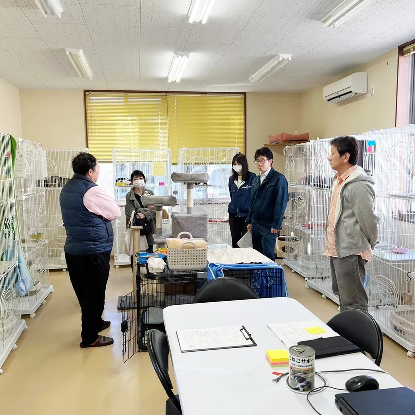 同社代表取締役 内海 友貴は21日、輪島市で自宅が全焼するなど被災者でありながら地域の根猫の保護活動を続ける漆芸家の桐本さんご夫婦や、震災直後よりペットのレスキュー活動を行なっているチームうーにゃん代表のうささん、シェルターの運営を担う認定NPOこねこサポーター代表の角谷さんらと共に、粟 貴章(あわ たかあき)野々市市長を表敬訪問。輪島におけるペット飼育者の被災状況や、ペット飼育者にとっての災害時の同伴・同行避難の重要性、シェルターの役割などについて説明を行いました。