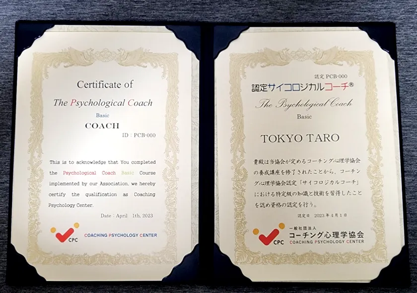※当ワークショップを修了されると【認定サイコロジカルコーチ」(Basicコース)の資格が取得できます。サイコロジカルコーチ(R)は、特許庁公認で商標登録