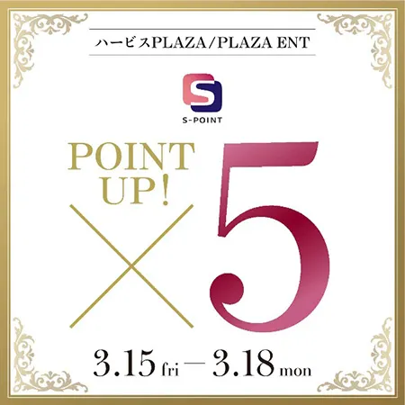 阪急阪神おでかけカードなどSポイントカードをお持ちのお客様を対象にしたポイントアップキャンペーンを開催いたします。通常お買上110円(税込)ごとに1ポイント進呈のところ5ポイントを進呈いたします。