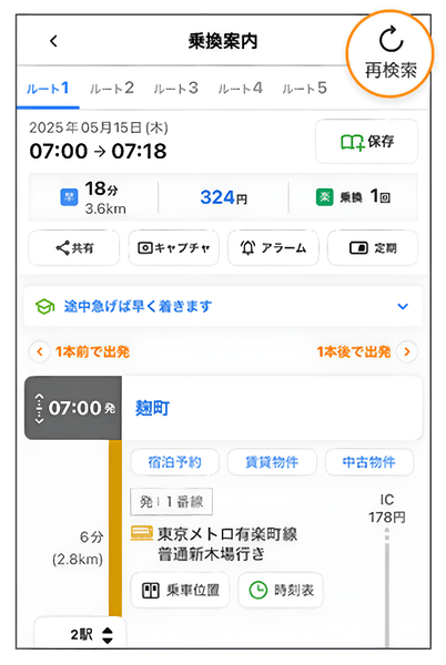 検索結果のルートや時刻表を画像で保存・共有可能にしました