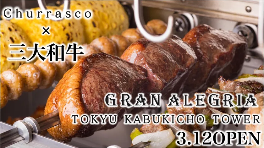 『シュラスコレストラン GRAN ALEGRIA』は、“松阪牛・神戸牛のシュラスコをお一人様50gずつ”と“15種類のシュラスコが食べ放題”。シュラスコを通じて日本の文化『三大ブランド和牛』をシュラスコで提供する専門店は随一。